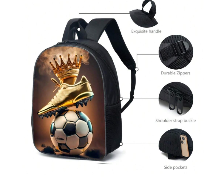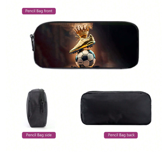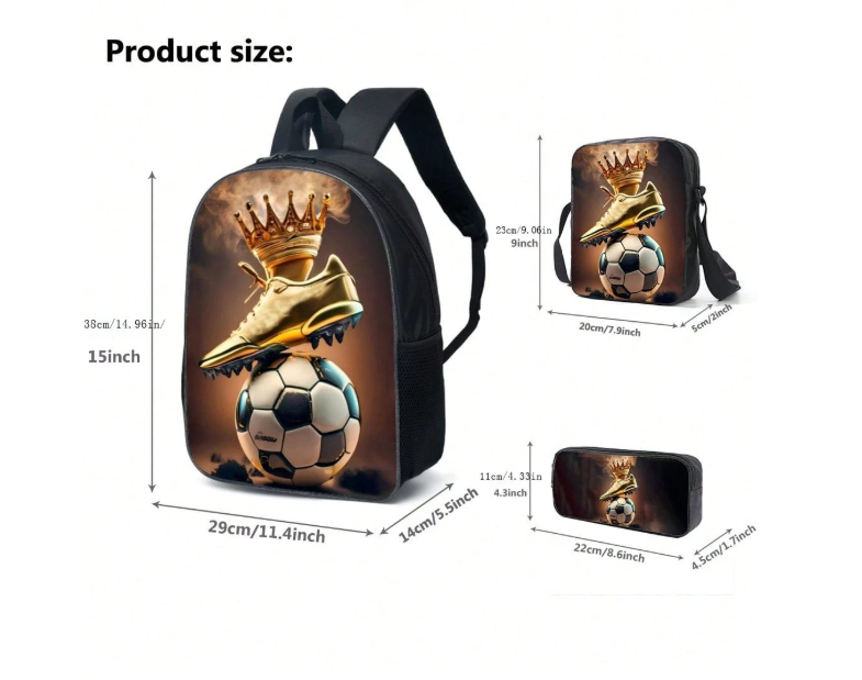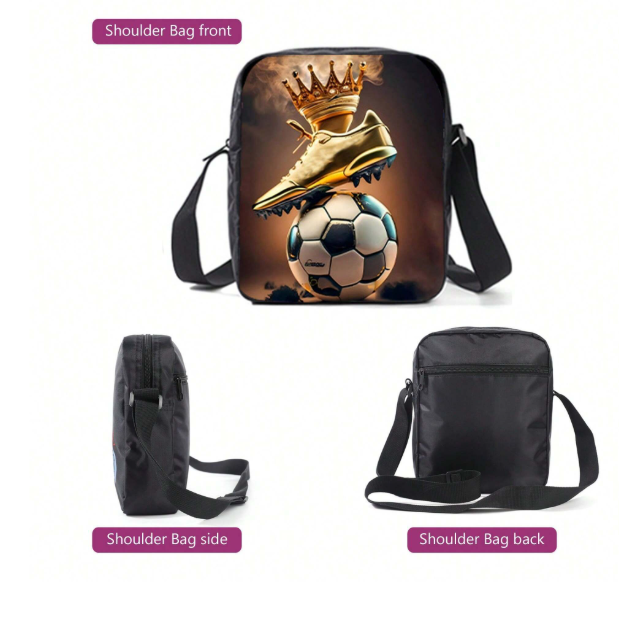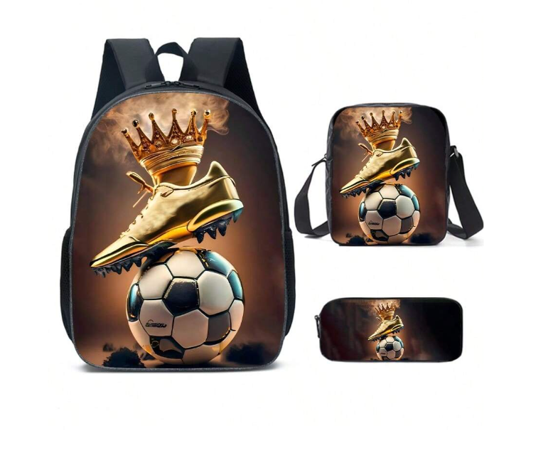 Set di 3 zaini per studenti con motivo calcistico, zaino leggero da esterno per il tempo libero per ragazzi, combinazione di 3 pezzi: zaino, borsa a tracolla e astuccio