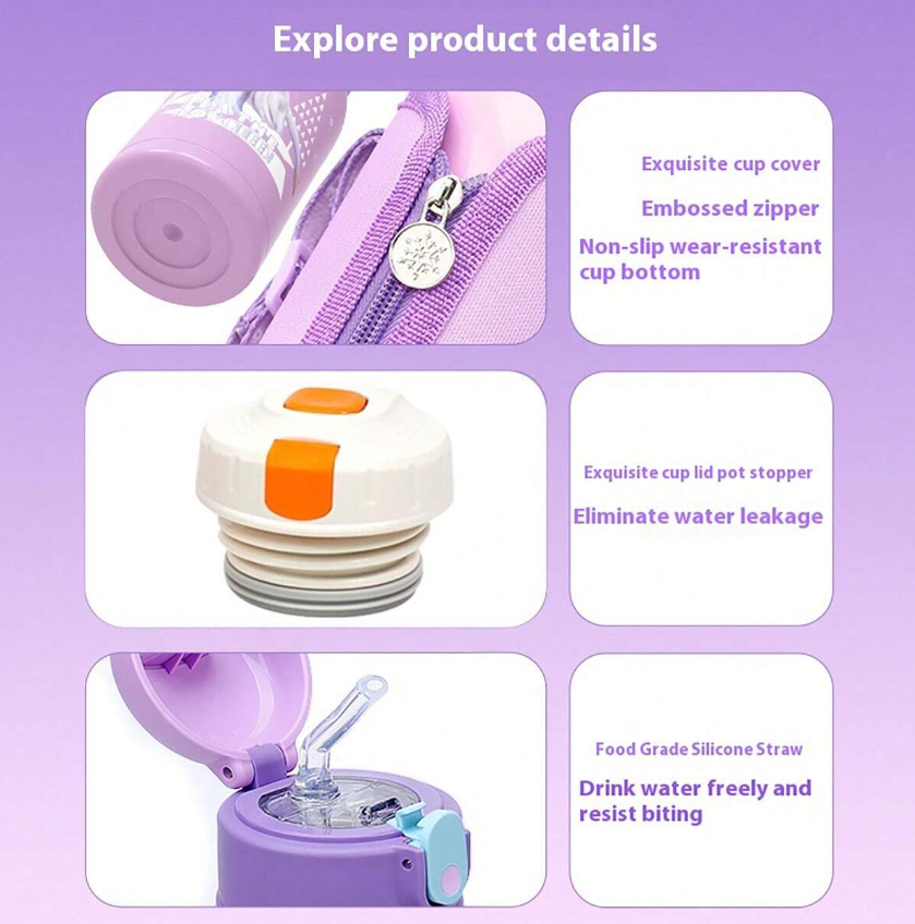 Disney 1 pezzo Tazza termica in acciaio inossidabile ufficialmente concessa in licenza Disney Frozen Elsa, con opzioni di bevuta diritta e con cannuccia, grande capacità, anti-caduta, anti-perdite, portatile, perfetta per la scuola e i picnic. Un regalo perfetto per compleanni e Natale per amici e famiglia