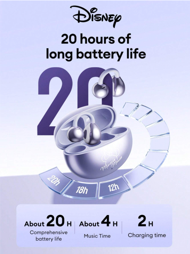 Disney Auricolari Bluetooth Disney Mikey QS-T31 con cancellazione intelligente del rumore, audio surround stereo, microfono ad alta definizione, bassa latenza, lunga durata della batteria, design con archetto comodo per sport, giochi e musica