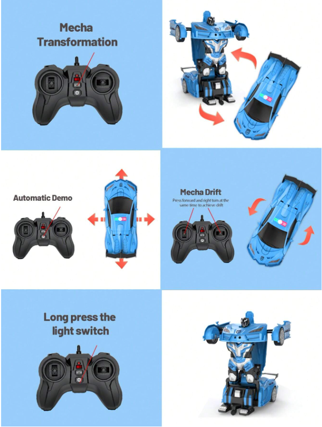 Auto telecomandata trasformabile, modello di auto realistico con luci da auto della polizia, auto da corsa telecomandata 2.4Ghz resistente alle interferenze, giocattolo auto trasformabile per acrobazie, batteria ricaricabile, rotazione a 360° e trasformazione con un solo pulsante, funzione di demo automatica. Adatto per bambini da 6 a 12 anni, giocattolo per compleanni, regalo di Natale per bambini e bambine