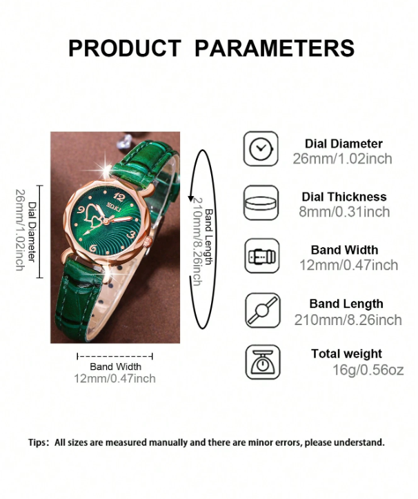 SOKI SOKI 1 pezzo Orologio da donna casual alla moda con quadrante a forma di pesca e Set di gioielli con 5 pezzi di collana a cuore, orecchini, bracciale e anelli, adatto per festa, vacanze, compleanni o regali per sorelle, il miglior regalo per una donna (senza scatola)