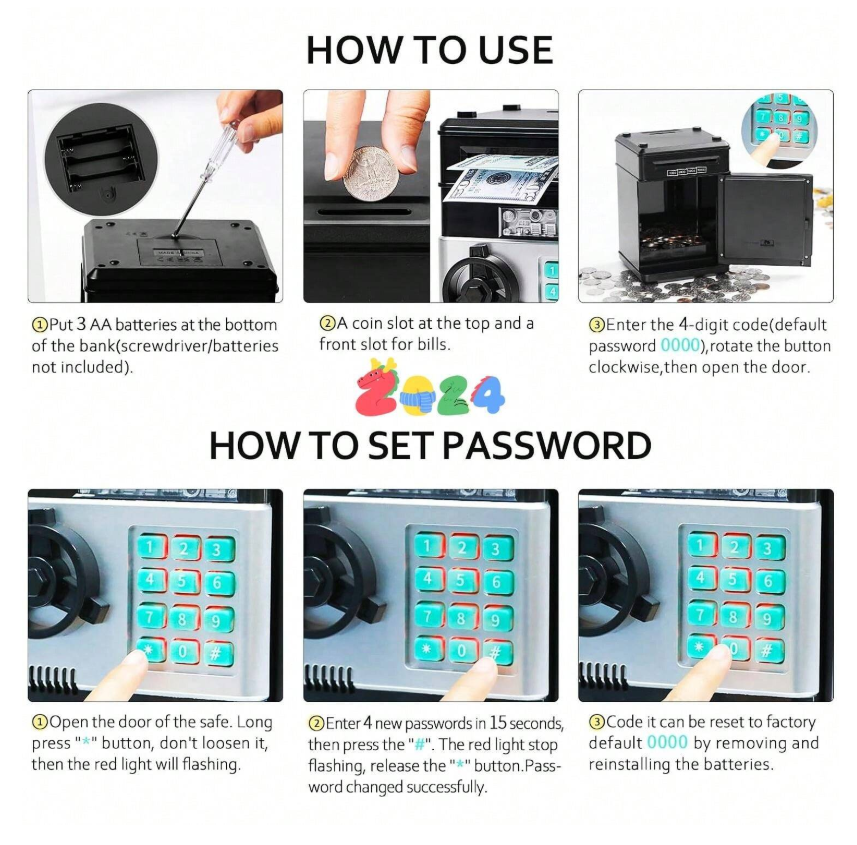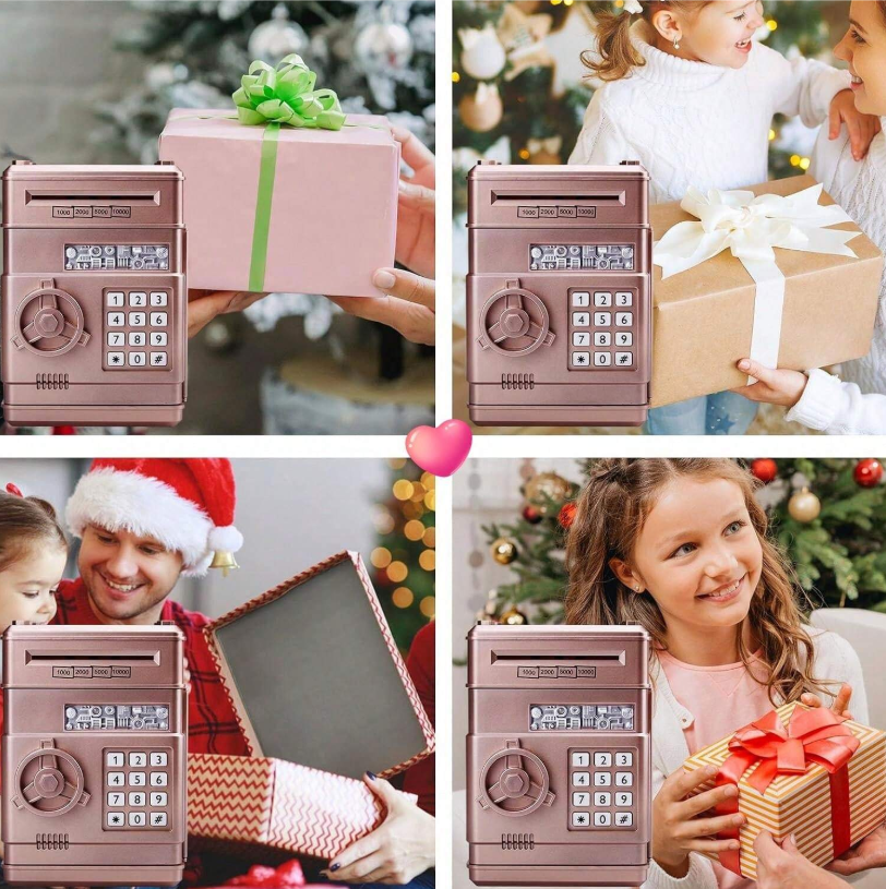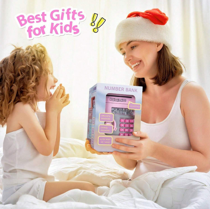 Salvadanaio elettrico a forma di maialino come decorazione natalizia per bambini, cassaforte giocattolo, bancomat per risparmiare monete e banconote, gioco educativo, oggetto carino, macchina bancomat salvadanaio, ideale come regalo per bambini di età superiore ai 3 anni, senza banconote e monete incluse, organizzatore di denaro, salvadanaio a forma di maialino per bambini, vecchie monete da bambini, bancomat per bambini