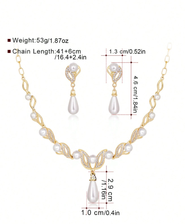 Set di collana e orecchini placcati in oro con perle, gioiello nuziale, orecchini pendenti e orecchini a perno, disponibile nei colori oro, argento e perla